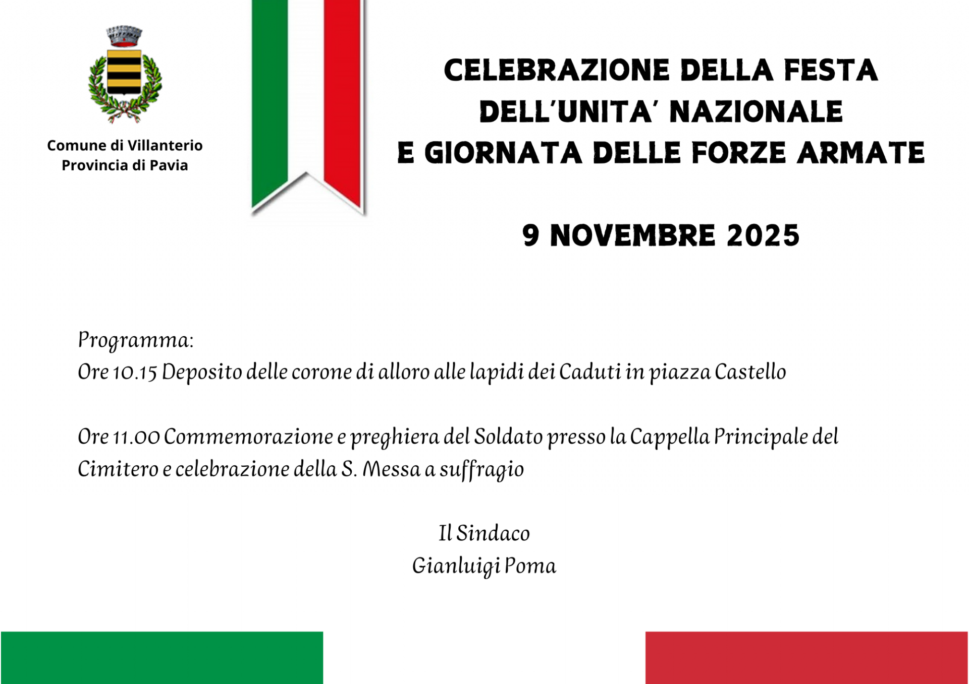Ore 11.00 Commemorazione e preghiera del Soldato presso la Cappella Principale del Cimitero e celebrazione della S. Messa a suffragio