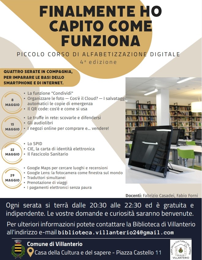 Quattro serate in compagnia, per imparare le basi dello smartphone e di internet: